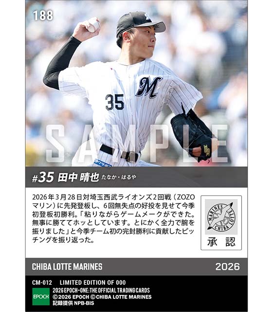 公式【田中晴也】今季初登板初勝利(26.3.28) のカードを買うならエポックワン!税込・送料無料!