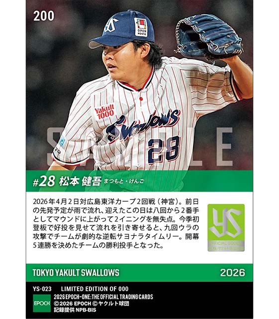 公式【松本健吾】今季初登板初勝利(26.4.2) のカードを買うならエポックワン!税込・送料無料!