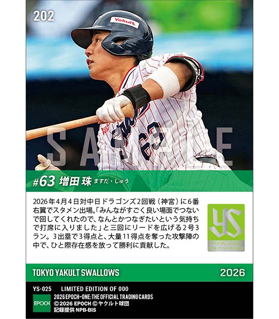 公式【増田 珠】貴重な追加点となる2号3ラン(26.4.4) のカードを買うならエポックワン!税込・送料無料!