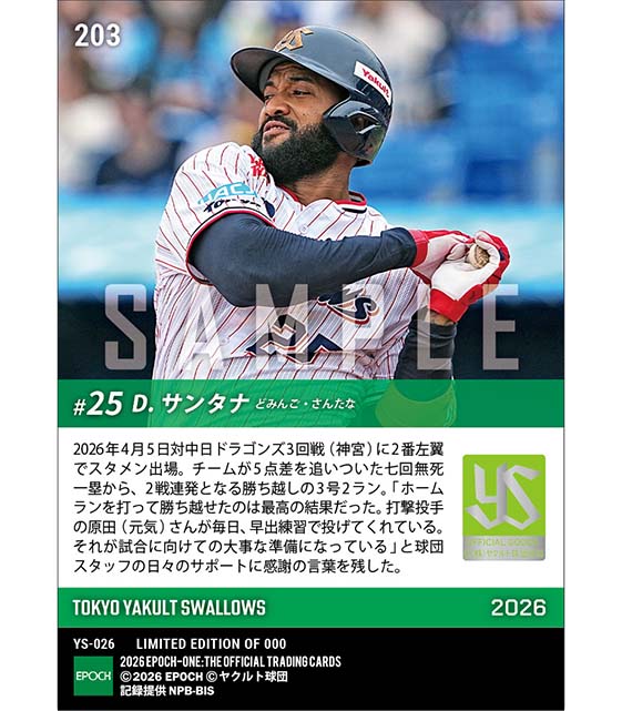 公式【サンタナ】2戦連発となる決勝弾(26.4.5) のカードを買うならエポックワン!税込・送料無料!