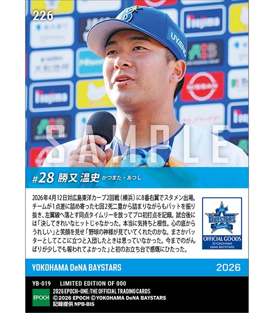 公式【勝又温史】気持ちと根性でプロ初打点(26.4.12) のカードを買うならエポックワン!税込・送料無料!