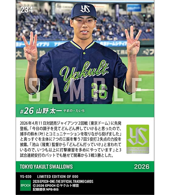 公式【山野太一】開幕3戦3勝&3試合連続安打(26.4.11) のカードを買うならエポックワン!税込・送料無料!