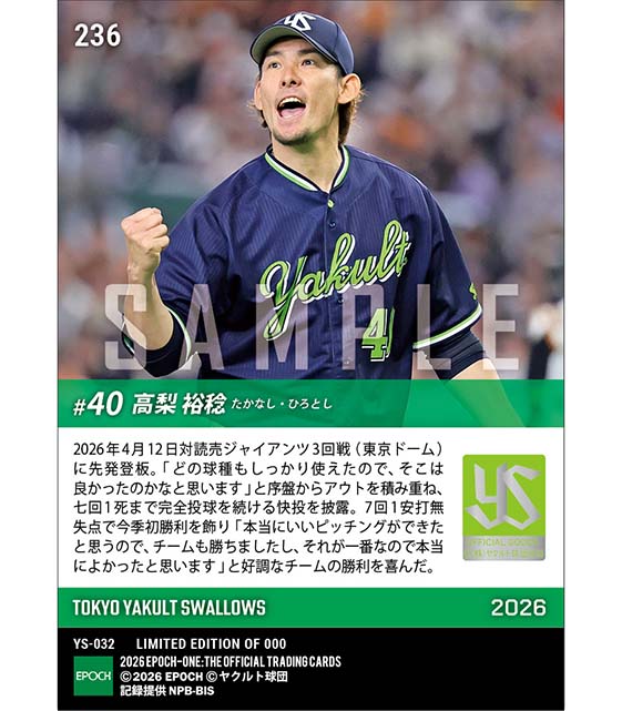 公式【高梨裕稔】七回1死まで完全投球の快投で今季初勝利(26.4.12) のカードを買うならエポックワン!税込・送料無料!