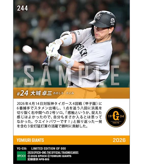 公式【大城卓三】同点弾含む3安打猛打賞(26.4.14) のカードを買うならエポックワン!税込・送料無料!