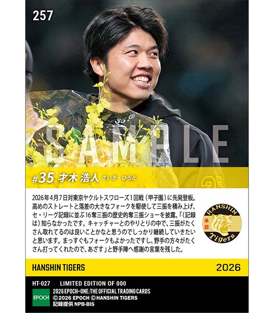 公式【才木浩人】16奪三振の歴史的奪三振ショー(26.4.7) のカードを買うならエポックワン!税込・送料無料!