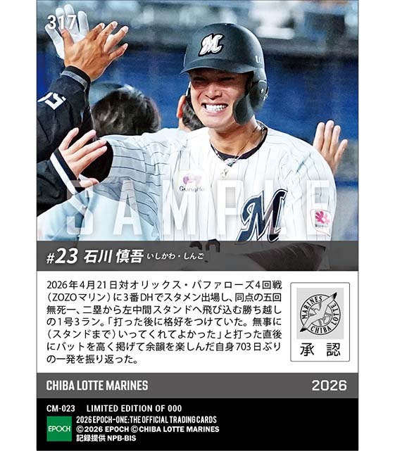 公式【石川慎吾】703日ぶりの一発となる1号3ラン(26.4.21) のカードを買うならエポックワン!税込・送料無料!