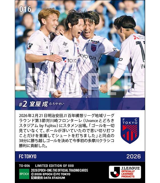 公式【室屋 成】多摩川クラシコで決勝ゴール(26.2.21) のカードを買うならエポックワン!税込・送料無料!