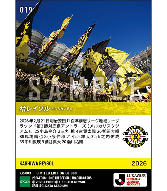公式【柏レイソル】明治安田J1百年構想リーグ第3節スタメン(26.2.21) のカードを買うならエポックワン!税込・送料無料!