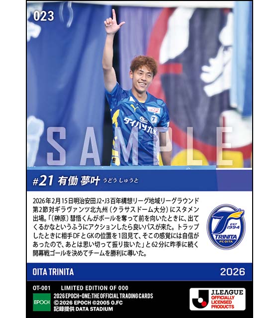 公式【有働夢叶】昨季に続く開幕戦ゴール(26.2.15) のカードを買うならエポックワン!税込・送料無料!