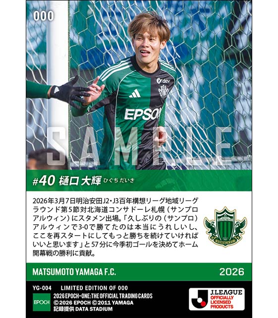 公式【樋口大輝】ホーム開幕戦で今季初ゴール(26.3.7) のカードを買うならエポックワン!税込・送料無料!