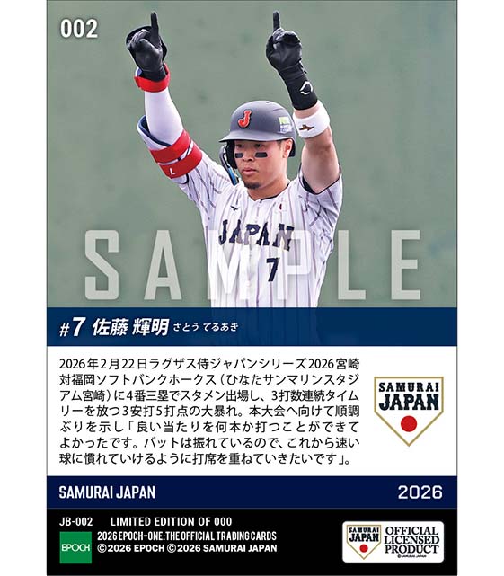 公式【佐藤輝明】大勝に導く3打数連続タイムリー(26.2.22) のカードを買うならエポックワン!税込・送料無料!