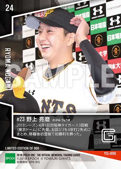 公式【野上亮磨】移籍後初登板初勝利(18.4.1) のカードを買うならエポックワン!税込・送料無料!
