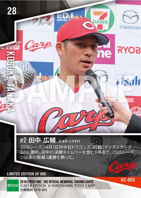 公式【田中広輔】13年ぶり開幕3連勝(18.4.1) のカードを買うならエポックワン!税込・送料無料!