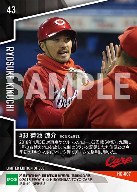 公式【菊池涼介】今季初本塁打(18.4.5) のカードを買うならエポックワン!税込・送料無料!
