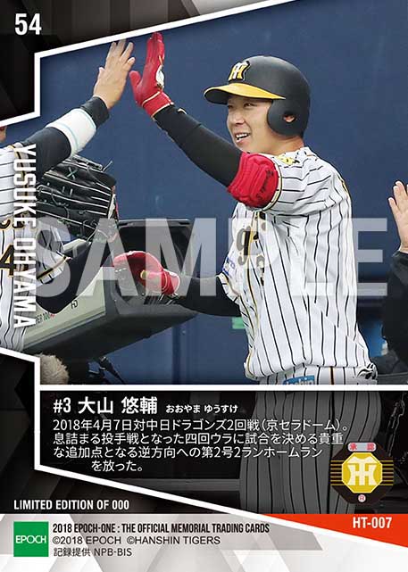 公式【大山悠輔】貴重な追加点となる2号2ラン(18.4.7) のカードを買うならエポックワン!税込・送料無料!