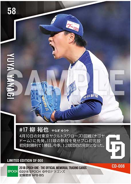 公式【柳裕也】プロ初完投・初完封勝利(今季12球団完封一番乗り)(18.4.10) のカードを買うならエポックワン!税込・送料無料!