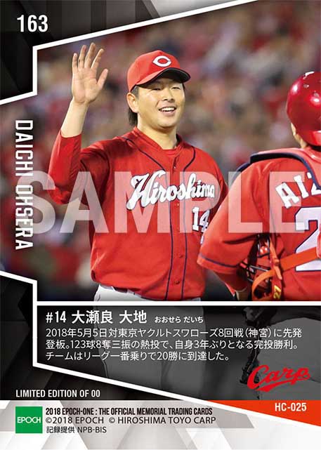 公式【大瀬良大地】1097日ぶりとなる完投勝利(18.5.5) のカードを買うならエポックワン!税込・送料無料!