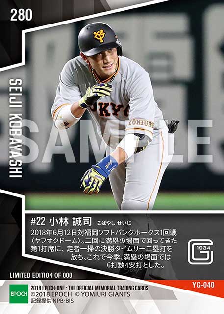公式【小林誠司】“満塁男”(走者一掃の決勝タイムリー)(18.6.12) のカードを買うならエポックワン!税込・送料無料!