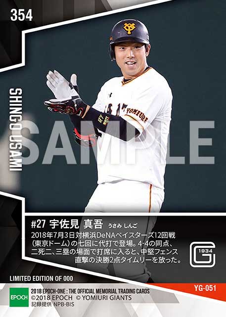 公式【宇佐見真吾】代打決勝タイムリー(18.7.3) のカードを買うならエポックワン!税込・送料無料!