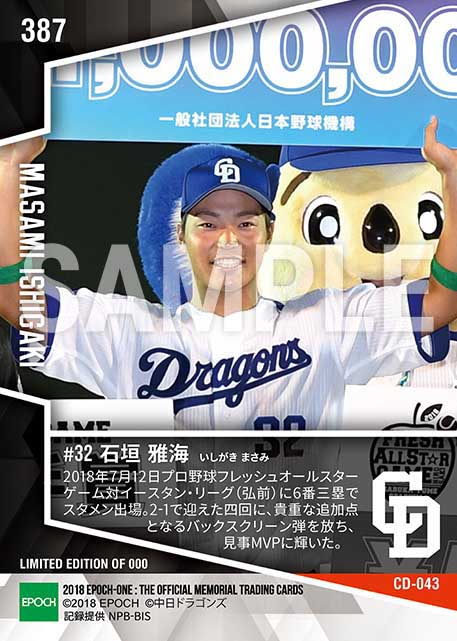 公式【石垣雅海】最優秀選手賞(フレッシュオールスターゲーム2018)(18.7.12) のカードを買うならエポックワン!税込・送料無料!