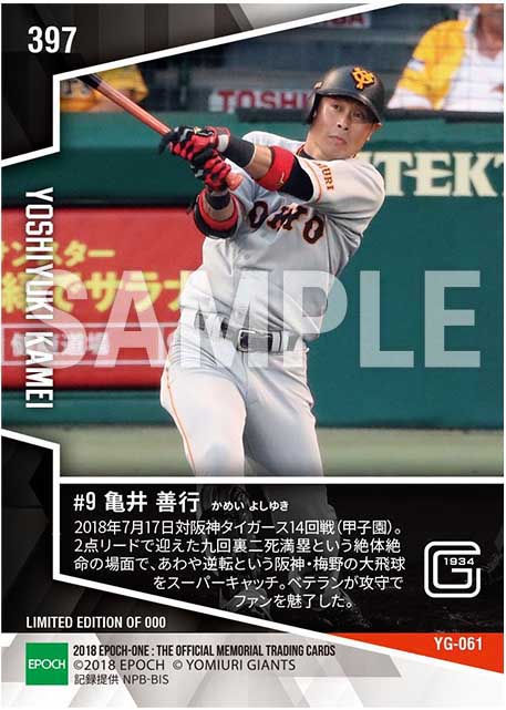 公式【亀井善行】勝利をもぎ取るスーパーキャッチ(&決勝2点タイムリー)(18.7.17) のカードを買うならエポックワン!税込・送料無料!