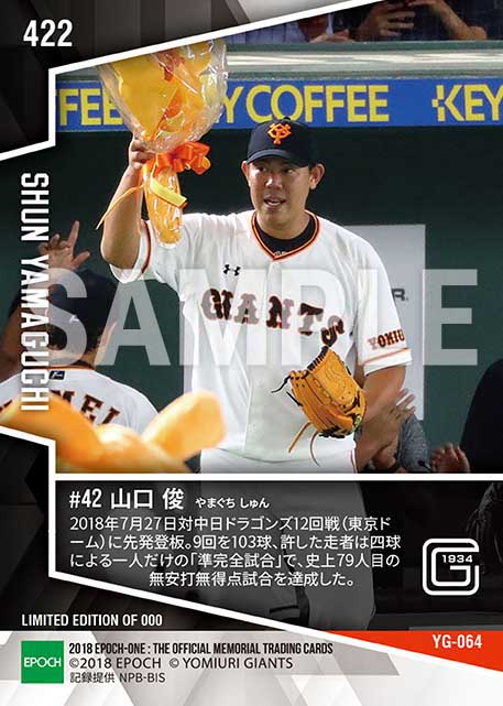 公式【山口俊】ノーヒットノーラン達成(18.7.27) のカードを買うならエポックワン!税込・送料無料!