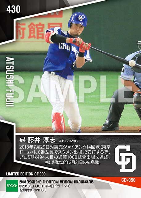 公式【藤井淳志】通算1000試合出場(18.7.29) のカードを買うならエポックワン!税込・送料無料!