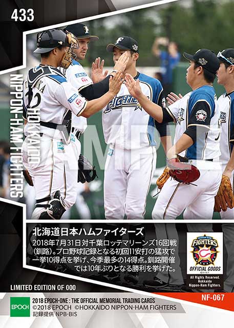 公式【北海道日本ハムファイターズ】初回11安打の猛攻(プロ野球新記録)(18.7.31) のカードを買うならエポックワン!税込・送料無料!