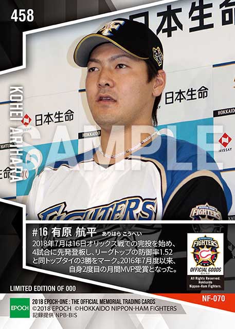 公式【有原航平】2018年度 日本生命月間MVP賞 パシフィック・リーグ7月度投手部門(18.8.8) のカードを買うならエポックワン!税込・送料無料!