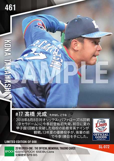 公式【髙橋光成】今季初登板初勝利(18.8.8) のカードを買うならエポックワン!税込・送料無料!