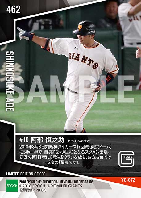 公式【阿部慎之助】6号決勝3ラン(18.8.8) のカードを買うならエポックワン!税込・送料無料!