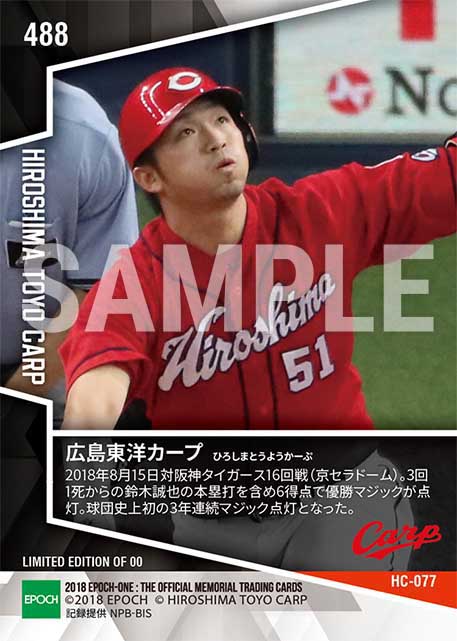 公式【広島東洋カープ】球団史上初3年連続マジック点灯(18.8.15) のカードを買うならエポックワン!税込・送料無料!
