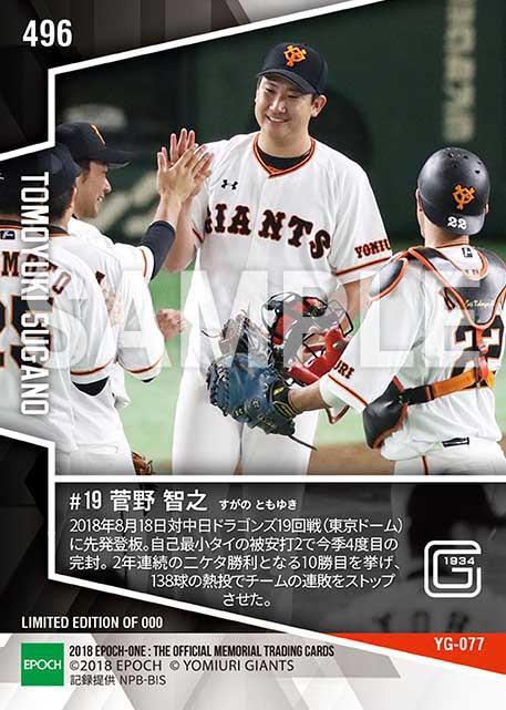 公式【菅野智之】完封で今季10勝目(5度目の二ケタ勝利到達)(18.8.18) のカードを買うならエポックワン!税込・送料無料!