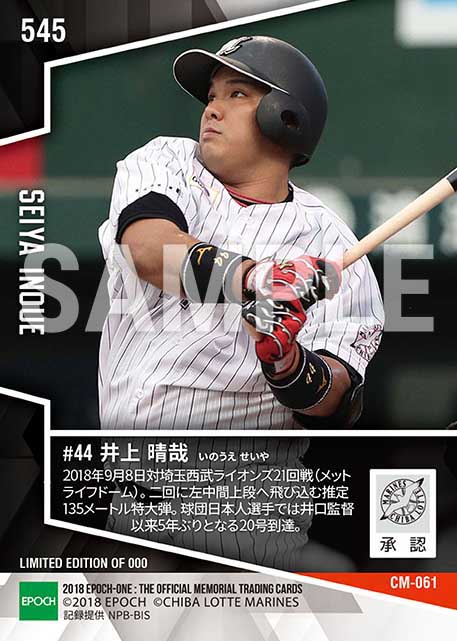 公式【井上晴哉】特大20号含む3安打3打点(18.9.8) のカードを買うならエポックワン!税込・送料無料!