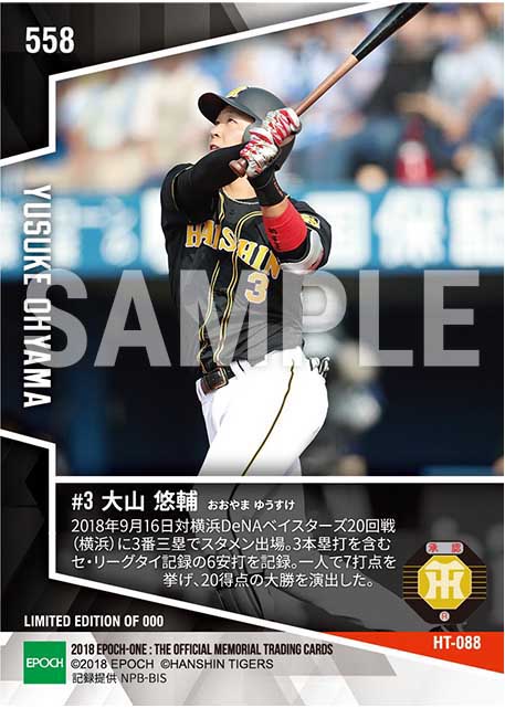 公式【大山悠輔】6安打(リーグ最多タイ)(1イニング2本含む3本塁打7打点)(18.9.16) のカードを買うならエポックワン!税込・送料無料!