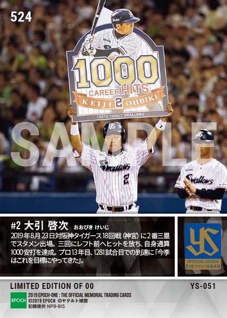 公式【大引啓次】通算1000安打達成(19.8.23) のカードを買うならエポックワン!税込・送料無料!