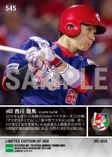 公式【西川龍馬】球団タイ記録の月間42安打(19.8.31) のカードを買うならエポックワン!税込・送料無料!