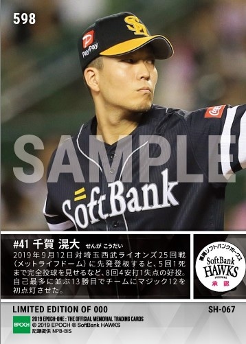 公式【千賀滉大】8回1失点の快投で優勝Mを初点灯させる13勝目(19.9.12) のカードを買うならエポックワン!税込・送料無料!
