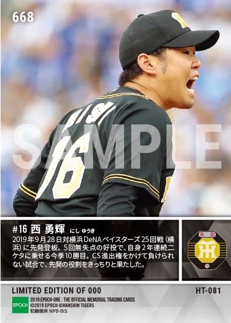 公式【西 勇輝】2年連続二ケタ勝利到達(19.9.28) のカードを買うならエポックワン!税込・送料無料!