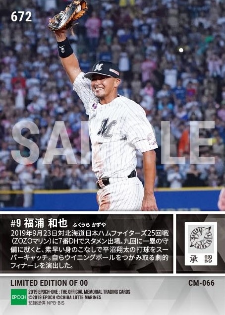 公式【福浦和也】超ファインプレーで有終の美(19.9.23) のカードを買うならエポックワン!税込・送料無料!