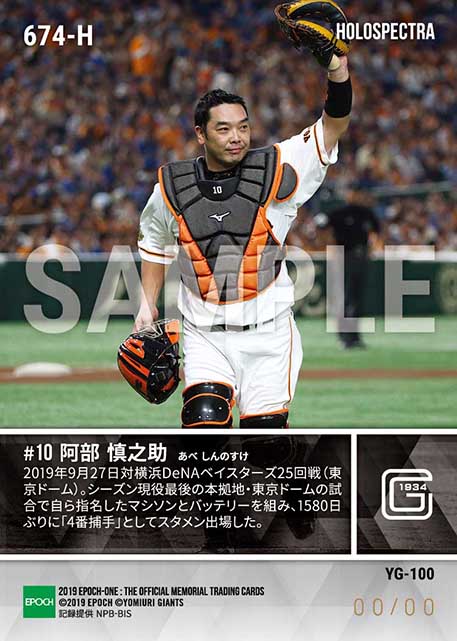 公式※ホロスペクトラ【阿部慎之助】4番捕手でスタメン出場「ありがとう慎之助」(19.9.27) のカードを買うならエポックワン!税込・送料無料!