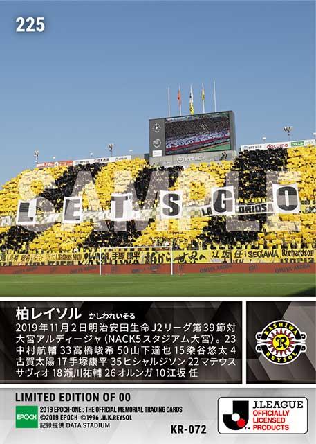 公式【柏レイソル】2019シーズン 第39節スタメン(19.11.2) のカードを買うならエポックワン!税込・送料無料!