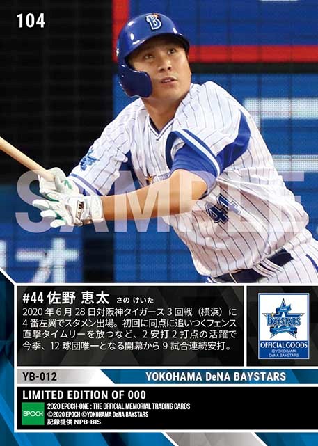 公式【佐野恵太】12球団唯一の開幕9試合連続安打(20.6.28) のカードを買うならエポックワン!税込・送料無料!