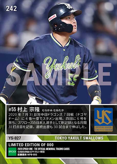 公式【村上宗隆】球団日本人新記録となる月間31打点(20.7.31) のカードを買うならエポックワン!税込・送料無料!