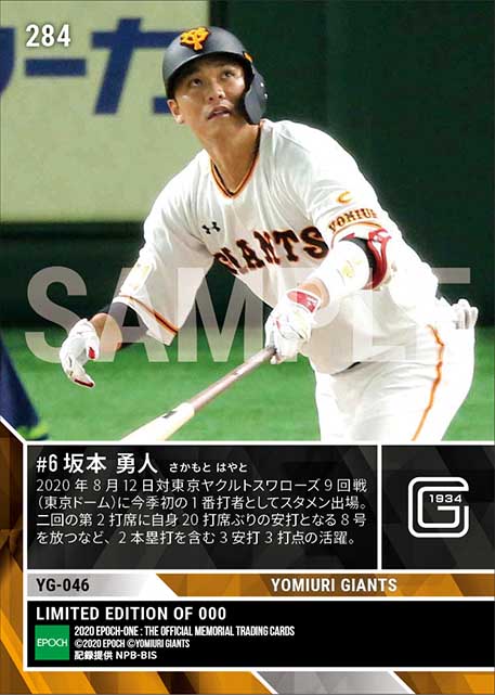 公式【坂本勇人】今季初の1番起用で快報2発(20.8.12) のカードを買うならエポックワン!税込・送料無料!