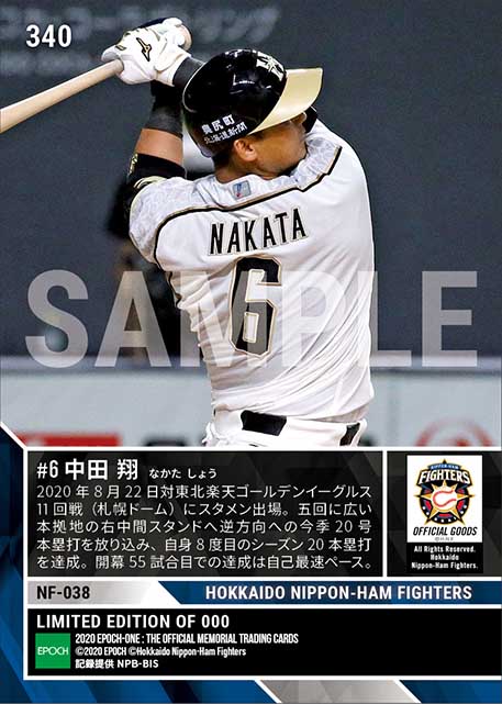 公式【中田 翔】両リーグ最速20号本塁打到達(20.8.22) のカードを買うならエポックワン!税込・送料無料!