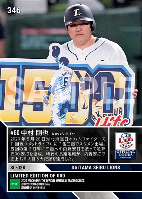 【中村剛也】通算1500安打達成(20.8.26)