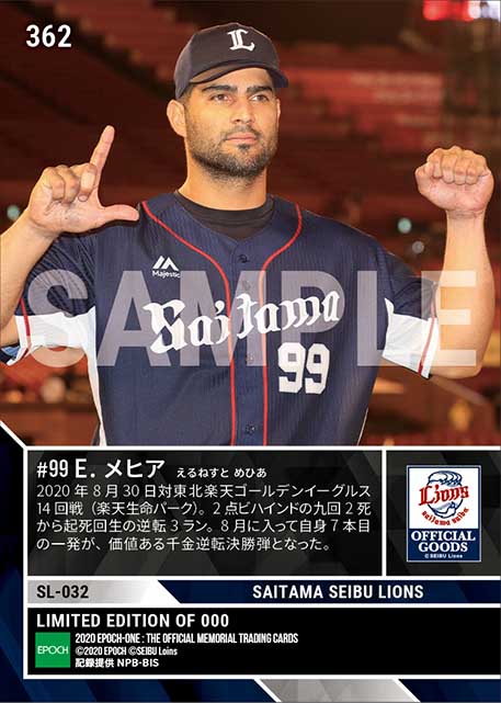 公式【メヒア】九回二死から土壇場逆転決勝3ラン(20.8.30) のカードを買うならエポックワン!税込・送料無料!