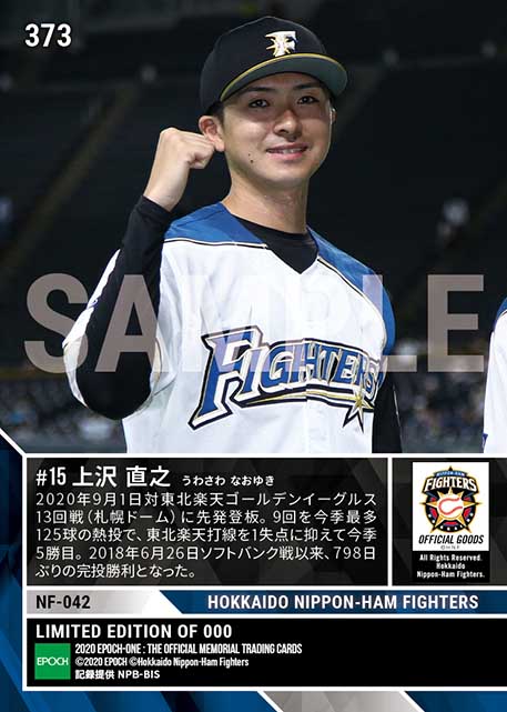 公式【上沢直之】798日ぶりの完投勝利(20.9.1) のカードを買うならエポックワン!税込・送料無料!