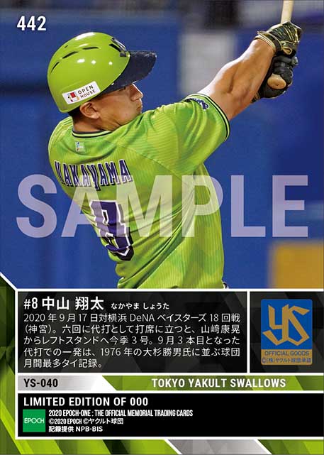 公式【中山翔太】球団最多タイ月間代打3本塁打「TOKYO燕プロジェクト」(20.9.17) のカードを買うならエポックワン!税込・送料無料!